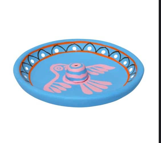 Porte-encens en terre cuite bleu adapté aux températures élevées.
